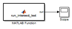Используя ту же модель в окне «Покрытие модели для функциональных блоков MATLAB», предположим, что функции MATLAB run_intersect_test и rect_intersect хранятся во внешнем файле MATLAB с именем run_intersect_test.m.