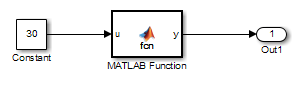В этом примере рассмотрим следующую модель, содержащую блок функции MATLAB.