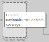 Серый с пунктирной границей: отфильтрованное покрытие. Подсистема fuel_rate_control выделена серым цветом, поскольку была исключена из записи покрытия.