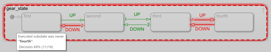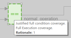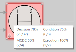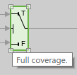 При наведении курсора на цветной объект появляется подсказка с подробными сведениями о покрытии, записанном для этого блока. Для подсистем и диаграмм Stateflow ® в подсказке по покрытию перечислены суммарные покрытия для всех объектов в этой подсистеме или диаграмме. Для других блоков в подсказке перечислены конкретные сведения об объектах, которые не получили 100% покрытия.