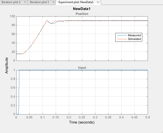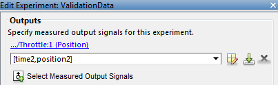 Чтобы импортировать данные в эксперимент, щелкните правой кнопкой мыши и выберите Изменить... для запуска редактора экспериментов. Импорт выходных данных, например, путем ввода в диалоговом окне на панели «Выходные данные» [time1,position1]. Импортируйте входные данные, например, в диалоговом окне на панели «Входные данные». [time1,input1].