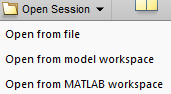 При подготовке данных и сохранении сеанса, как описано в разделе Подготовка данных для оценки параметров, загрузите предварительно настроенный сеанс. На вкладке «Оценка параметров» нажмите кнопку Open Session раскрывающийся список.