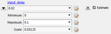 Поэтому укажите 0 как минимальное значение для всех параметров и 0,1 как максимальное значение input_delay. В окне «Оценка параметров» нажмите кнопку «Выбрать параметры», чтобы задать границы значений параметров. Для каждого параметра нажмите кнопку со стрелкой вправо, чтобы отобразить поля минимума, максимума и масштаба. Укажите минимальное значение для каждого параметра путем замены -Inf с 0 в поле Минимум. Укажите максимальное значение для input_delay заменой +Inf с 0.1 в соответствующем поле Maximum.