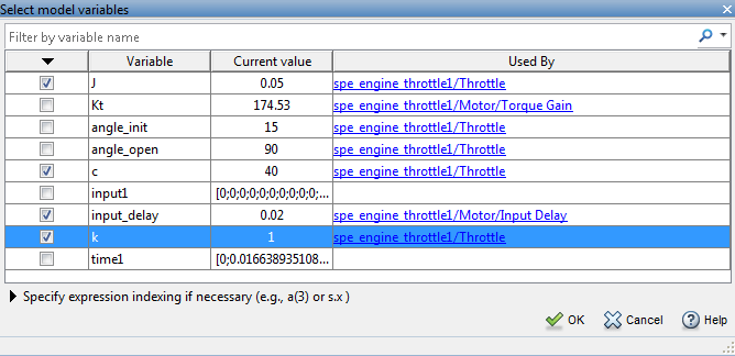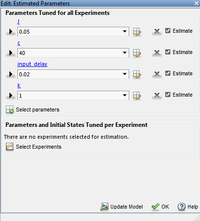 Выберите параметры J, c, input_delay, и kи нажмите кнопку «ОК».