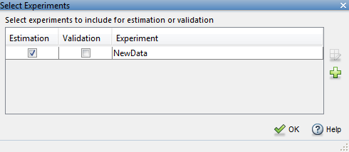 В окне «Оценка параметров» на вкладке «Оценка параметров» нажмите кнопку «Выбрать эксперименты». В диалоговом окне «Выбор экспериментов» в столбце «Оценка» выберите эксперимент для использования.