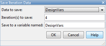 Также можно открыть диалоговое окно Сохранить данные итерации (Save Iteration Data) в окне Отчет о ходе оптимизации (Optimization Progress Report). Для этого в отчете о ходе выполнения щелкните Сохранить итерацию.