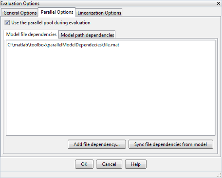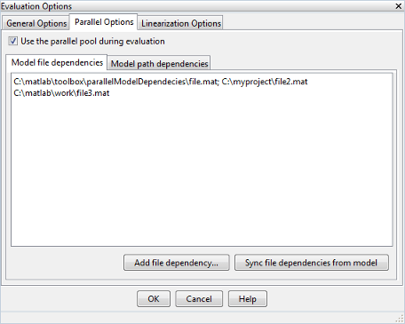 При изменении модели Simulink повторно синхронизируйте зависимости, чтобы убедиться в обнаружении новых зависимостей. Щелкните Синхронизировать зависимости файлов от модели (Sync file dependencies from model) на вкладке Параллельные опции (Parallel Options), чтобы повторно запустить автоматическую проверку зависимостей для модели.