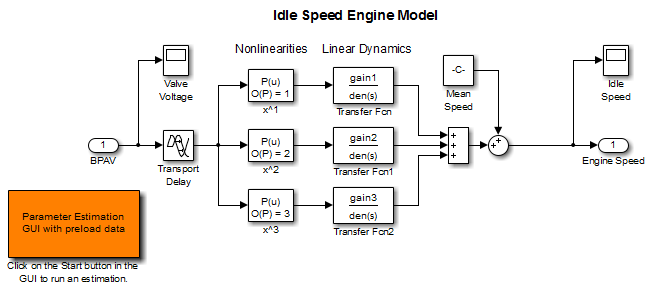 В подсказке MATLAB ® откройте нелинейную модель скорости холостого хода автомобильного двигателя, набрав: