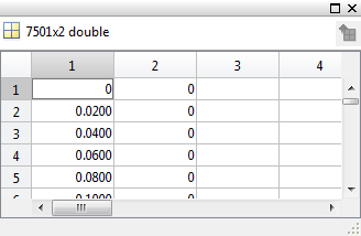 Можно импортировать выходные данные путем ввода [time,iodata(:,2)] на панели «Выходы». Просмотреть данные можно щелчком мыши.