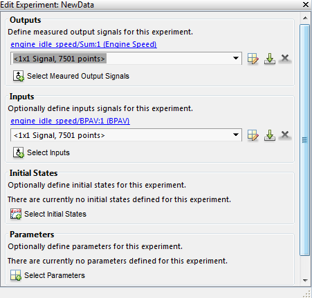 Например, строки на панели «Inputs» редактора соответствуют блоку «Inport» BPAV в engine_idle_speed модель.