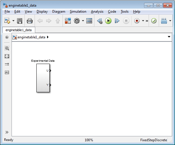 Подсистема экспериментальных данных в модели Simulink генерирует изменяющиеся во времени данные ввода-вывода во время моделирования.