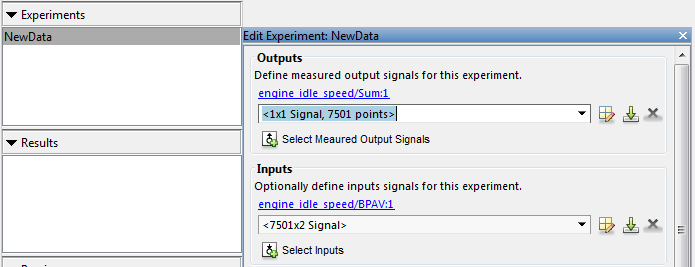 С помощью диалогового окна можно импортировать выходные данные путем ввода, например: [time,iodata(:,2)] на панели «Входы». Дополнительные сведения об импорте данных см. в разделе Импорт данных.