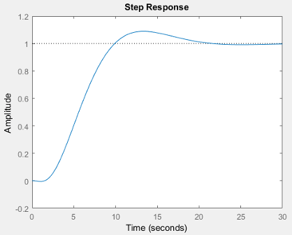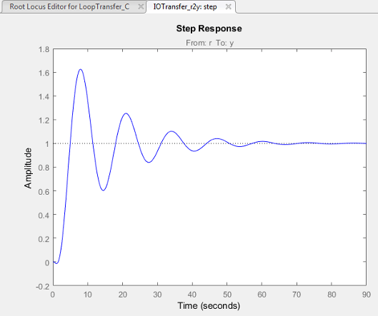 Приложение также отображает график ответа на шаг системы. На графике показана реакция системы с замкнутым контуром от r (вход в предварительный фильтр, F) в y (выход модели установки, G).