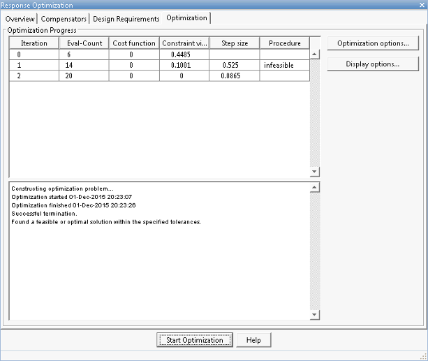 После выбора элементов компенсатора для настройки и добавления требований к конструкции можно оптимизировать отклик системы.