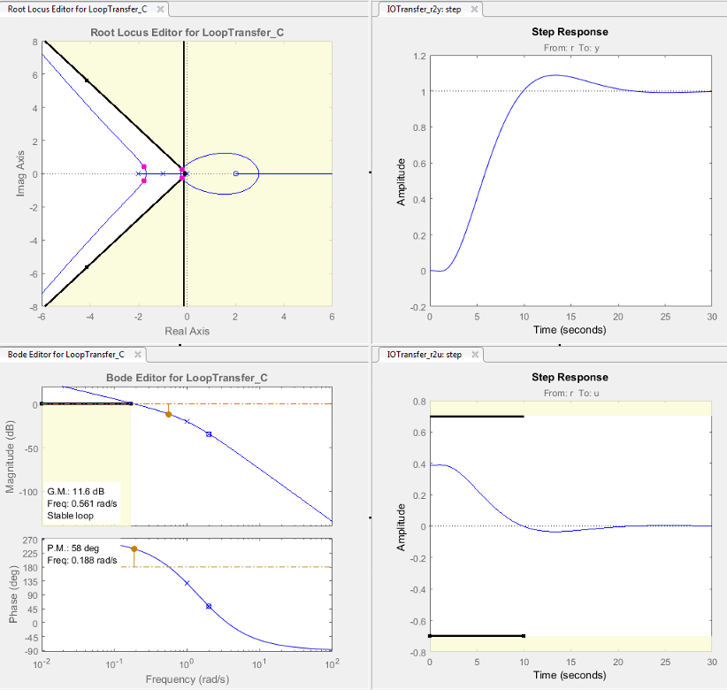 Можно задать требования к конструкции частотной области для оптимизации сигналов отклика для любой модели, разработанной в приложении Control System Designer, например: