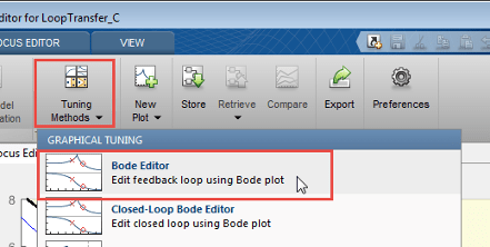 В приложении в раскрывающемся списке Методы настройки выберите Bode Editor.