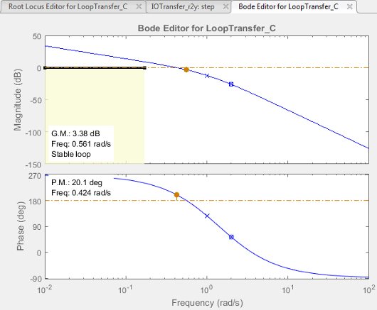 График Bode отображается в редакторе Bode Editor.