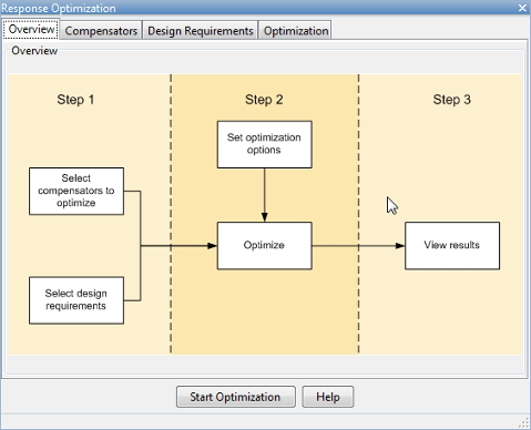 Окно Оптимизация ответа имеет четыре вкладки. За исключением первой вкладки, каждая вкладка соответствует шагу в процессе оптимизации ответа: