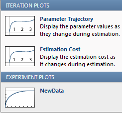 Используйте график эксперимента для визуализации данных эксперимента. Сначала создайте эксперимент и импортируйте данные, как описано в разделе Импорт данных для оценки параметров. Чтобы создать график эксперимента, на вкладке Оценка параметра (Parameter Estimator) щелкните Добавить график (Add Plot) и выберите команду Создать (New) Данные (Data) в разделе Графики эксперимента (Experiment Plots).
