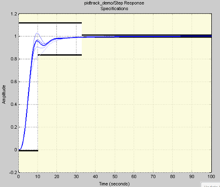 Просмотр сигналов модели и требований, применяемых к сигналу, с помощью графика отклика. Можно также построить график частотной характеристики системы (требуется программное обеспечение Simulink ® Control Design™).