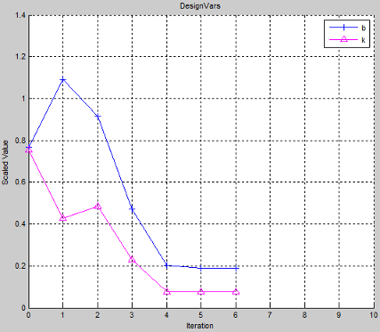Постройте график значений конструктивных переменных и требований по мере их изменения во время оптимизации с помощью графика итерации.