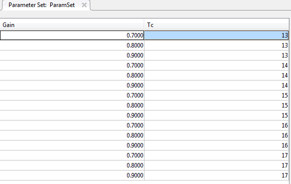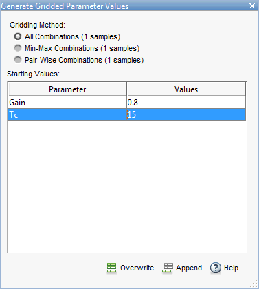 Щелкните Перезаписать. Таблица набора параметров обновляется с использованием сгенерированных значений параметров с сеткой.