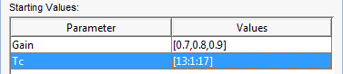 Укажите значения начального параметра в поле «Значения». Вводимые здесь значения определяют пространство параметров. Для просмотра других способов задания значений начальных параметров и методов создания сеток нажмите кнопку «Справка».