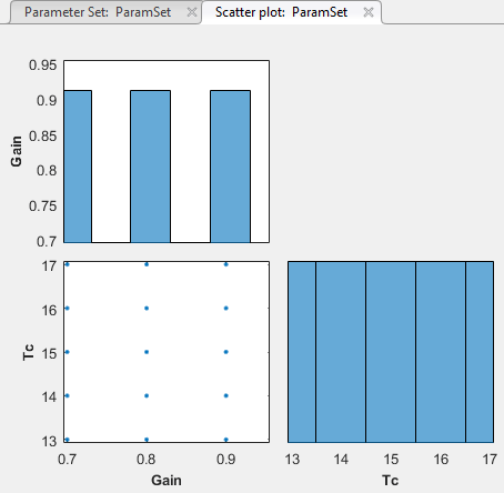 После генерации значений параметров постройте график сгенерированных значений для проверки их соответствия требуемым спецификациям. Это важно, если для каждого набора параметров создается небольшое количество случайных выборок. Дополнительные сведения см. в разделе Проверка сгенерированного набора параметров.