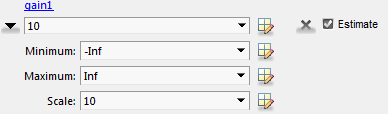 Теперь можно выбрать gain1 для оценки. См. раздел Определение параметров для оценки.