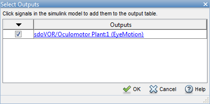 В окне модели Simulink ® щелкните добавляемый сигнал. Откроется диалоговое окно Select Outputs, в котором будут показаны новые сигналы. Чтобы добавить эти сигналы в качестве выходных сигналов, установите соответствующие флажки. Нажмите кнопку ОК.