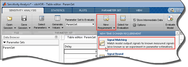 В анализаторе чувствительности в раскрывающемся списке New Requirement выберите Signal Matching.