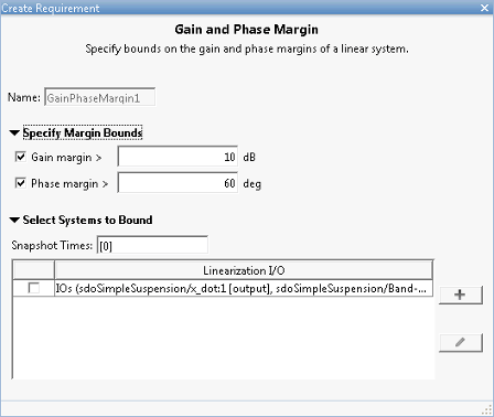 Это требование можно применить к модельным сигналам или линеаризации модели Simulink (требуется Simulink Control Design), или и к тому и к другому.