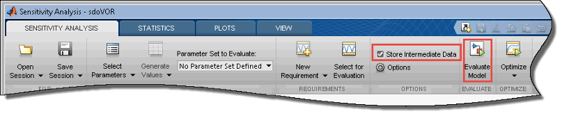 Чтобы сохранить промежуточные данные во время оценки, на вкладке Анализ чувствительности (Sensitivity Analysis) щелкните Сохранить промежуточные данные (Store Intermediate Data).