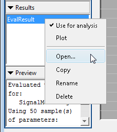 В области Результаты приложения щелкните правой кнопкой мыши оцененный результат и выберите Открыть в меню.