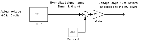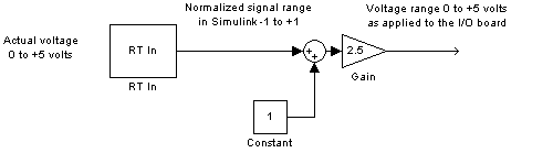 Программное обеспечение Simulink Desktop Real-Time позволяет нормализовать сигналы ввода-вывода, входящие в блок-схему. Как правило, входные данные представляют реальные значения, такие как угловая скорость, положение, температура и давление. Эта возможность нормализации сигналов позволяет