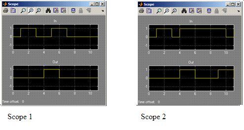 Delayed Fixed Duration- После завершения обнаружения входного сигнала и после дополнительной задержки выходной сигнал становитсяtrue для фиксированного количества временных шагов. Истинная продолжительность выходного сигнала не зависит от входного сигнала.