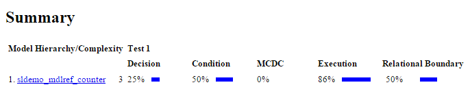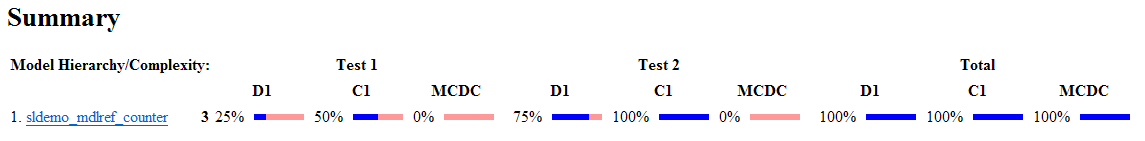 cvhtml('Coverage Summary', covdata_original, covdata_missing);Отчет показывает, что путем анализа ссылочной модели и использования этих результатов для записи покрытия можно достичь 100% решения, условия и покрытия MCDC.