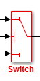 В следующем примере вход 2 всегда удовлетворяет критерию для блока Switch, поэтому блок Switch никогда не проходит через значение входа 3.