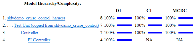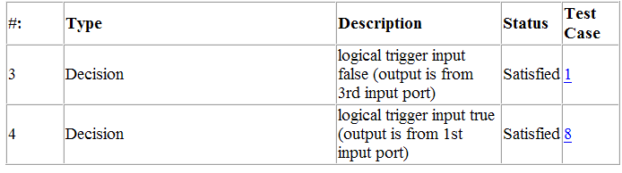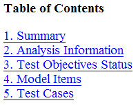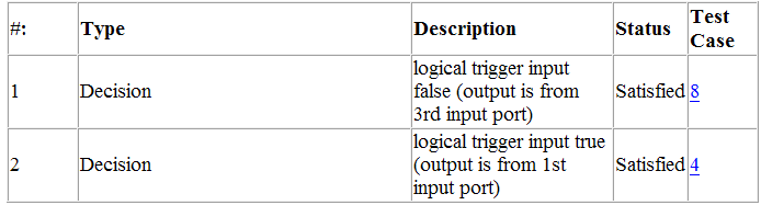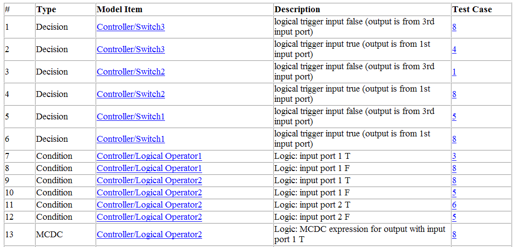 Элементы модели. В оглавлении щелкните Элементы модели (Model Items), чтобы просмотреть подробные сведения о каждом элементе в модели, определяющем цели покрытия. Эта таблица включает статус цели в конце анализа. Щелкните ссылки в таблице для получения подробной информации о удовлетворенных задачах.