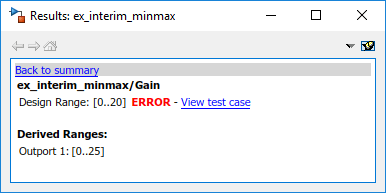 Во время анализа обнаружения ошибок конструкции программное обеспечение проверяет указанные минимальное и максимальное значения на промежуточных сигналах в модели и на выходных портах. Эти значения определяют проектные диапазоны.