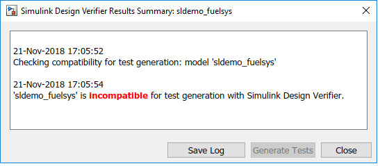 Если модель большая и содержит много подсистем, можно с помощью Test Generation Advisor определить, вызывают ли некоторые подсистемы несовместимость. Дополнительные сведения см. в разделе Использование помощника по созданию тестов для определения анализируемых компонентов.