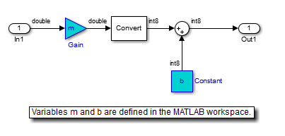 b является Simulink.Parameter объект типа int8 значение которого равно 5.