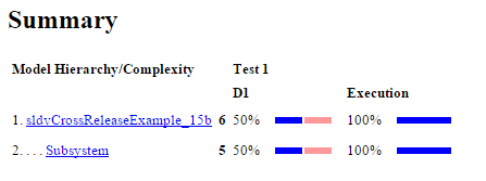После моделирования отчет о покрытии указывает, что 50% покрытия достигнуто для sldvCrossReleaseExample_15b модель.