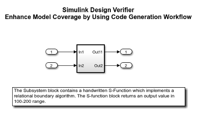 Скомпилировать S-функцию так, чтобы она была совместима с Simulink Design Verifier для создания тестового примера с помощью slcovmex (Покрытие Simulink). Дополнительные сведения см. в разделе Настройка S-функции для генерации тестового примера.