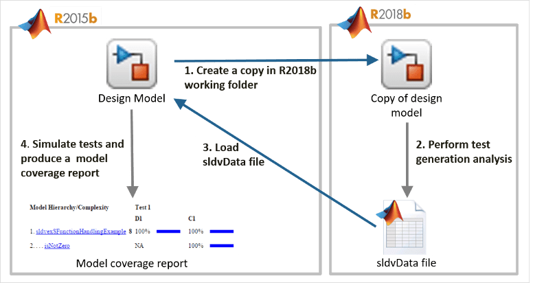 Чтобы расширить охват модели, созданной в более ранней версии, используйте рабочий процесс создания теста или рабочий процесс создания кода. Вы можете использовать новейшие возможности выпуска Simulink ® Design Verifier™ для создания тестовых примеров для конструкции на основе модели.