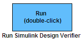 Запуск анализа Simulink Design Verifier для sldvdemo_cruise_control дважды щелкните на блоке «Выполнить проверку проекта Simulink».