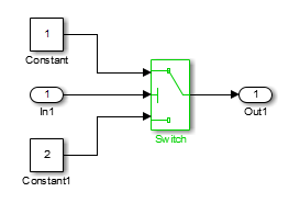 Из библиотеки Sources два блока констант используются в качестве входных данных блока Switch.