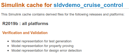 Для получения информации о том, что содержит определенный кэш Simulink, дважды щелкните файл кэша Simulink. Отчет содержит информацию о поддерживаемых выпусках, платформах и представлении модели.
