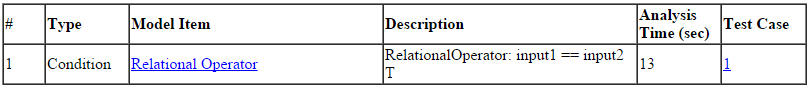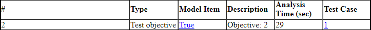 Чтобы выделить данный объект в модели, щелкните Вид (View) в левом верхнем углу таблицы; программа открывает новое окно, в котором объект отображается подробно. Чтобы просмотреть сведения о тестовом случае, примененном к определенной цели, щелкните номер тестового случая в последнем столбце таблицы.