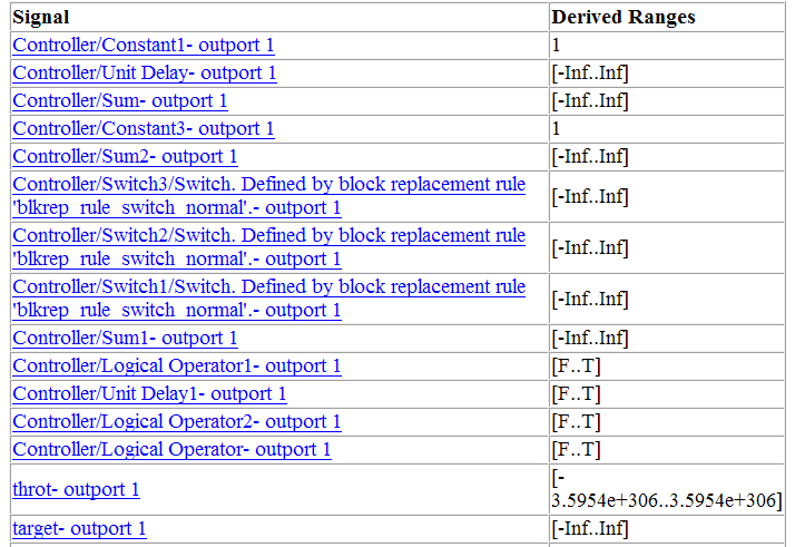 Таблица для отдельного объекта в модели выглядит аналогично этой таблице для интегратора дискретного времени в подсистеме PI Controller sldvdemo_cruise_control пример модели.